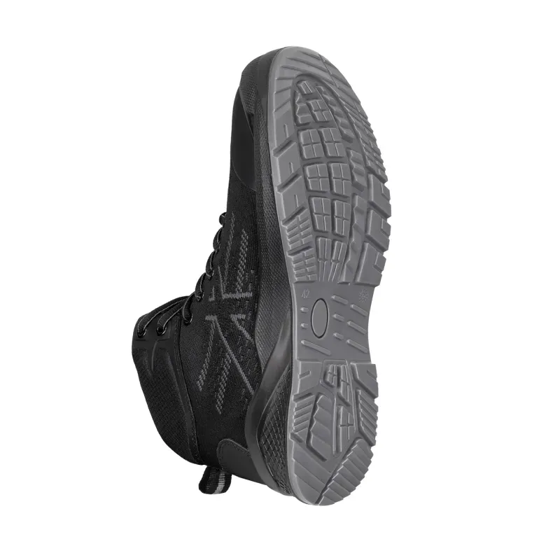 - Capellada: Microfibra negra, repelente a líquidos, con excelente resistencia mecánica.